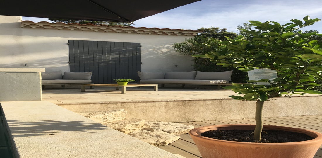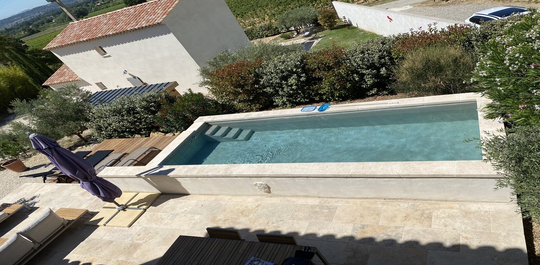Groot terras vooraan van 35 m² in de typische travertin vloeren met prachtig panoramisch uitzicht over de wijngaarden en de Mont Ventoux. Een privé zwembad in Romeinse stijl om zalig te genieten van de warme dagen. Dit zwembad is ook voorzien van verwarming en een afsluitbaar dek zodat zwemmen ook perfect mogelijk is in het voor- en najaar. Afzonderlijk terras aan de oostkant om te genieten van de ochtendzon in comfortable loungezetels.Ligstoelen, eettafel met stoelen en 2 afzonderlijke parasols. Eigen parkeerplaats en een schuur met afsluitbare opbergplaats voor de fietsen.