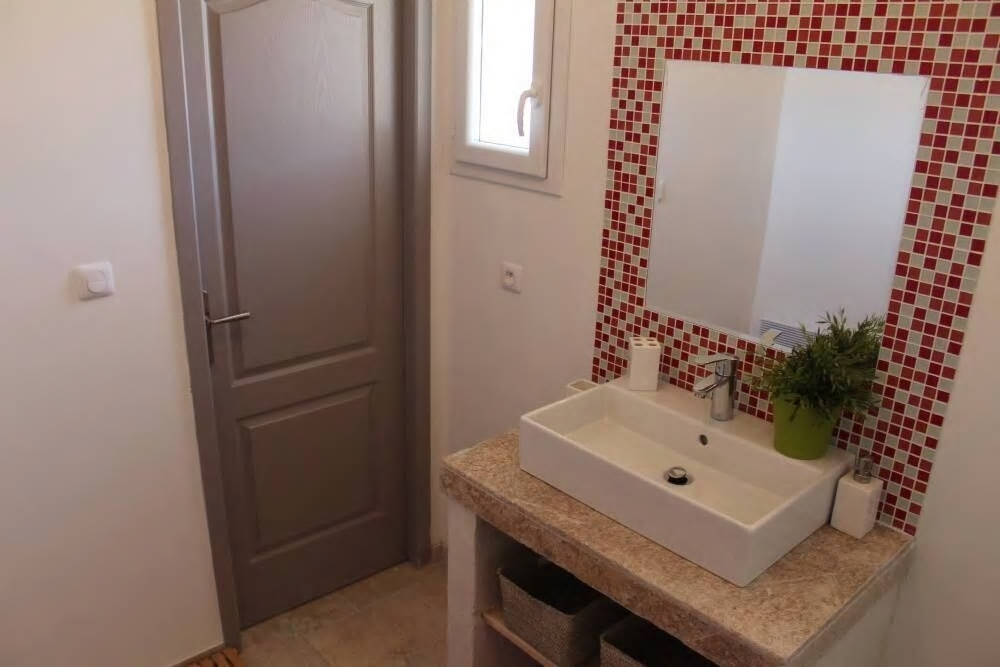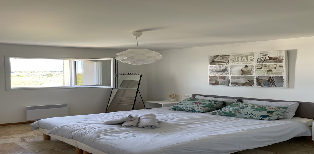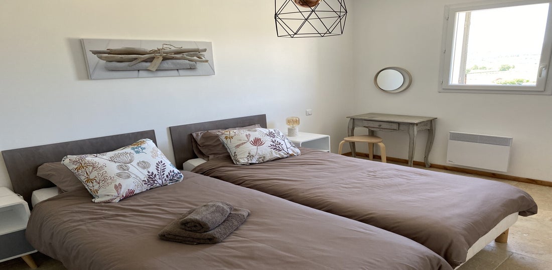 2 ruime slaapkamers met ingebouwde kasten en een prachtig zicht op de omliggende wijngaarden en de Mont Ventoux. Ook hier kunnen de bedden omgebouwd worden tot 2 afzonderlijke bedden. Gezamelijke ruime badkamer toegankelijk vanuit de beide slaapkamers met zeer ruime inloopdouche en lavabo, afzonderlijk toilet.